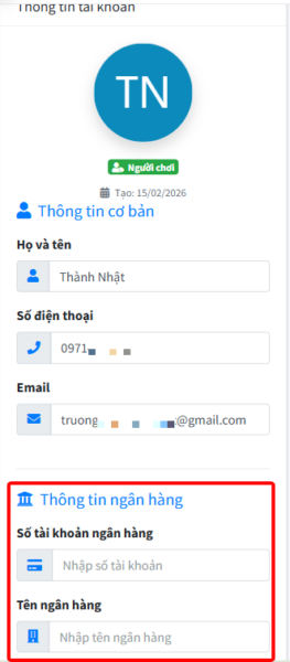 Sau khi đăng nhập thành công, vào lại mục tài khoản cập nhật thông tin.